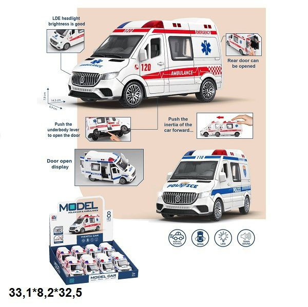 Автобус швидка/поліція 9901 інерц.в кор.33,1*8,2*32,5