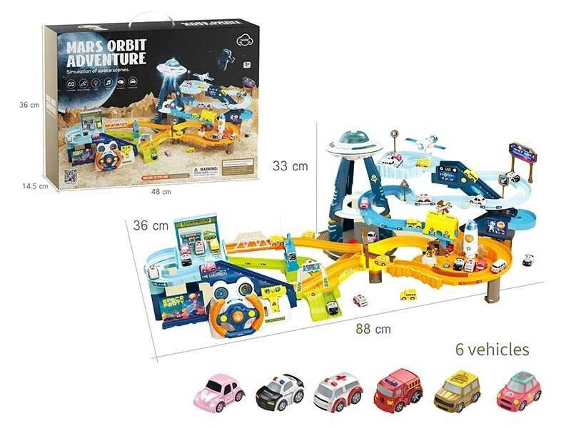 Автотренажер T918A (12шт) кермо, трек, музика-звук(англ), світло, рухливі деталі, паровоз 4шт, на ба