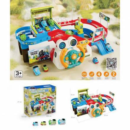Автотренажер T922A (12шт) кермо, трек, музика-звук(англ), світло, рухливі деталі, паровоз 4шт, на ба