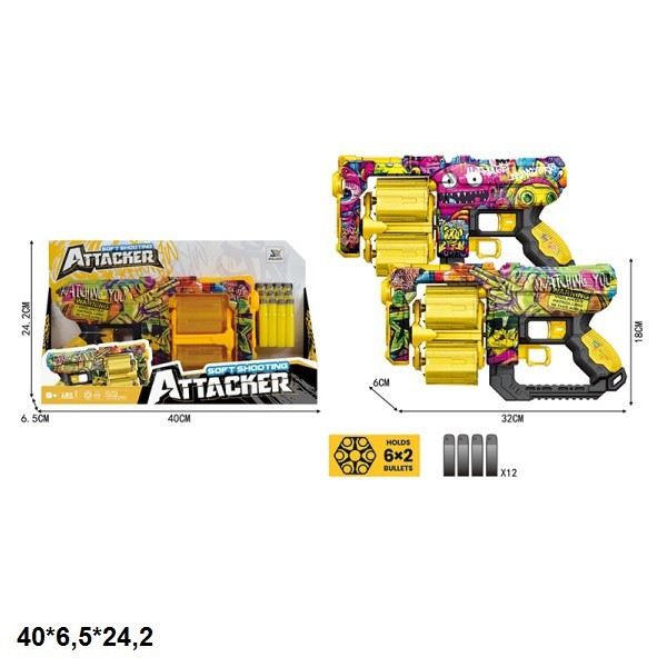 Бластер JLX8651 з м'як.патронами 2кол.кор.40*6,5*24,2