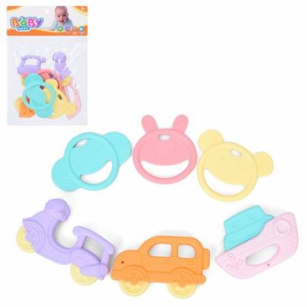 Брязкальце 508-162 (90шт) набір 6шт (транспорт, тварини), від 8см до 12см, прорізувач, у пакеті, 17,