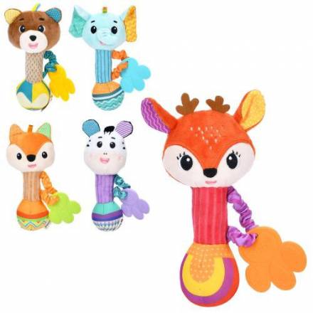 Брязкальце м'яке SY55-8 (50шт) 18см, прорізувач, шуршить, пискавка, 5 видів, у пакеті, 9-18-6см