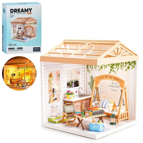 Будиночок 8010 Зроби сам, веранда, гойдалка, стіл, мийка, аксесуари, світло, від мережі/USBшну