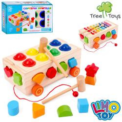 Дерев'яна іграшка Центр розвиваючий MD 0833 (16шт) каталка (на шнурі), 23,5см, сортер, фігурки, 2 ви