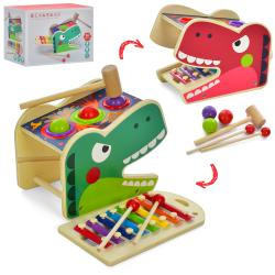 Дерев'яна іграшка Центр розвиваючий MD 1847 (12шт) 22см, динозавр, ксилофон-8тонів, стукалка, в кор-