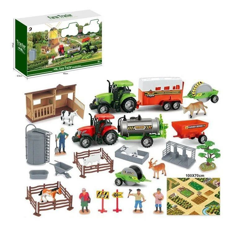 Ферма 1808-2 (16) 2 трактори з інерцією, гумові шини, розкладний хлів, 5 причепів, мапа з фермою 100