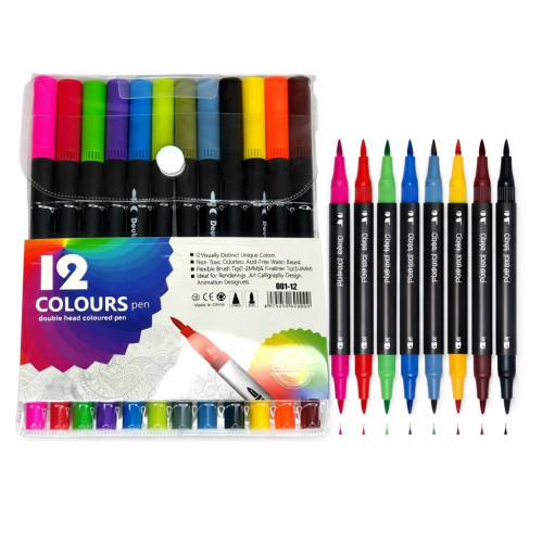 Фломастер із двосторонній на водній основі 12кол. у пач. 12пач в упак №001-12