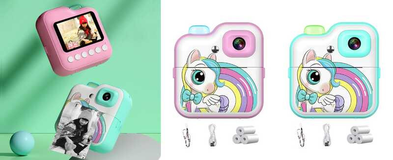 Фотоапарат-принтер C 72977 (40) 2 кольори, type-C, роз’єм для SD карти, фото, відео, гри, 3 рулони т
