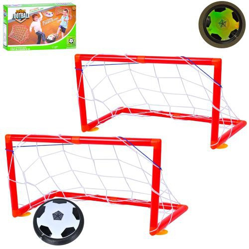 Футбольні ворота MR 1396 (12шт) 2шт, сітка 2шт, аером'яч 18см, світло, присоски, на бат-ці, в кор-ці