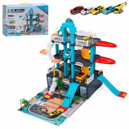 Гараж A247 (9шт) 64-75-в57см, 3 поверхи, ліфт(механічний), машинка 7см 4шт, вертоліт, дорожні знаки