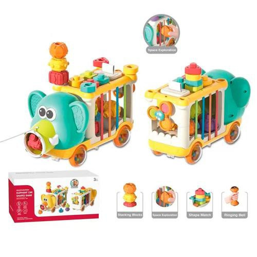 Гра YL1303 (24шт) машина, слон на колесах, 31,5см, каталка на шнурі, сортер, грань-резинки, 10фігур,