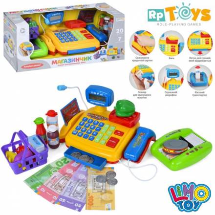 Кассовый аппарат 7018-UA (12шт) калькул,микроф,сканер,зв(укр),св,продукты,на бат-ке,в кор,43-18-17см
