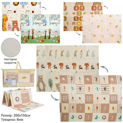 Килимок-мат MR 1569-3 (12шт) XPE, 150-200см, двосторонній, товщина 8мм, 3 види, у сумці, 75-40-10см