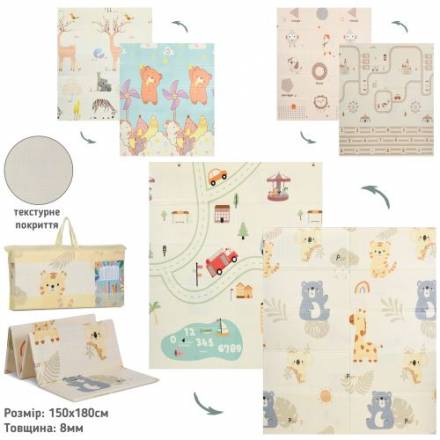 Килимок-мат MR 1570-2 (12шт) XPE, 150-180см, двосторонній, товщина 8мм, 3 види, у сумці, 75-37-9см