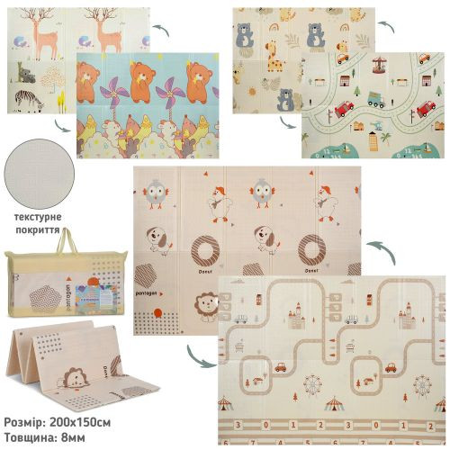 Килимок-мат MR 1570-3 (12шт) XPE, 150-200см, двосторонній, товщина 8мм, 3 види, у сумці, 75-40-10см