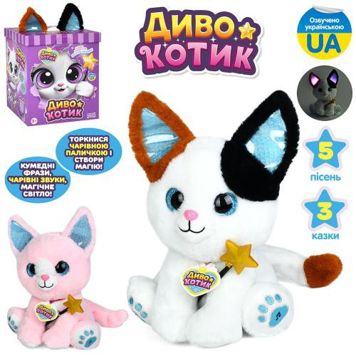 Кіт M 6224 I UA (16шт) Диво котик, 27-20-18см, музика-звук(укр), світло, 4 казки, 5 пісень, повтор,