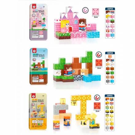Конструктор HD195A-7A-8A (24шт) магнітний, куб 2см, 38дет, 3 види, в кор-ці(метал), 9,5-21-4см