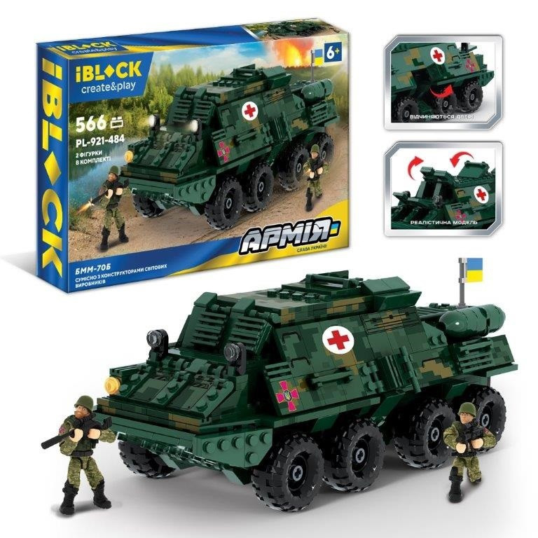 Конструктор IBLOCK арт. PL-921-484 (12шт) Армія, БMM-70Б, 566 дет., 2 фігурки, короб. 46*6,4*28,5см