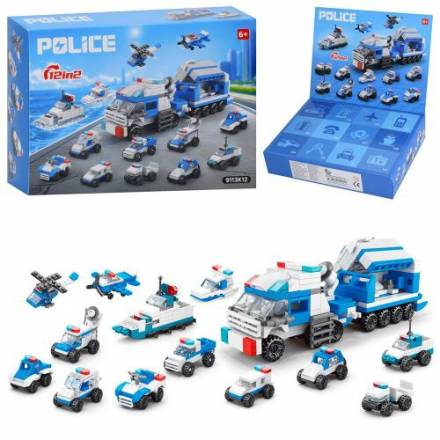 Конструктор Конструктор 9113K12 (36шт) поліція, адвент-календар, транспорт, 12в2(машина, катер), в к