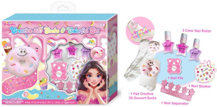 Косметика набір арт. T084SC маникюр, веселі шкарпетки, лак, наліпки, аксес короб. 30*5*20