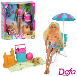 Лялька DEFA 8475 (12шт) 29см, шарнірна, шезлонг, зонтик, собака, 2 вида, в кор-ке, 29,5-30,5-8,5см