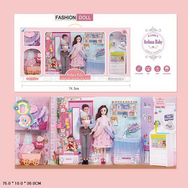 Лялька арт. 202169 (12шт/2) типу Барбі, сім'я 4 ляльки(мама, тато, 2 малюки), візочок, ліжечко, акс