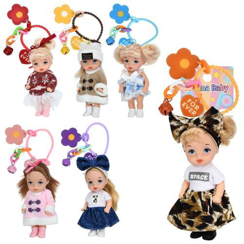 Лялька DH2393, петелька, дзвіночок, брелок, аксесуар на сумку, 6 видів, у пакеті, 10-14-