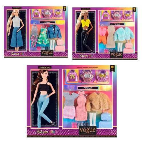 Лялька FD0415-16-17 (18шт) лялька з вбранням, 30см, шарнірна, сумки, валіза, взуття, 3 види, в кор-ц
