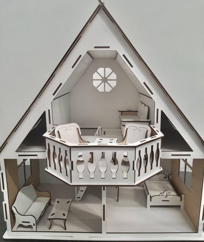 Ляльковий будиночок (фанера) "CONTRY HOUSE"2 повер, 3 кімн,8 мебл47х51х38см/00318