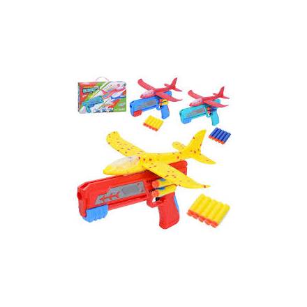 Літак 77917-11 (48шт) 23см, пінопласт, на запуску(пістолет 24,5см), м'які кулі-присоски 5шт, мікс ко