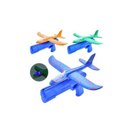 Літак TD202375 (110шт) 23см, на запуску(пістолет), пінопласт, світло, мікс кольорів, бат(табл), у па