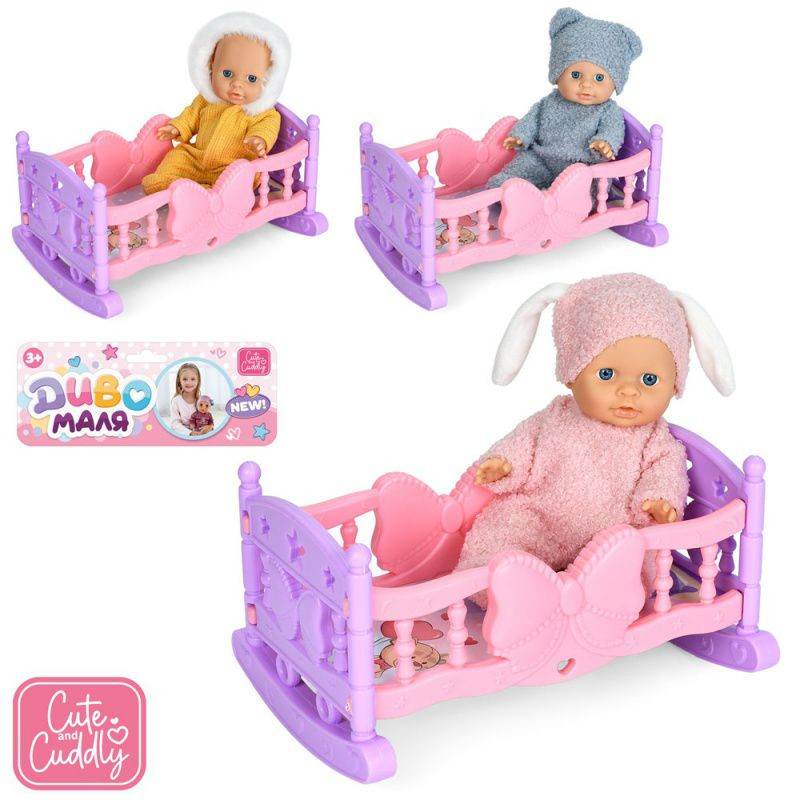 Ліжечко з лялькою YL2520K-B-DM-UA ліжко 24-16-в13см, пупс 22см, 3 види, у пакеті, 20-33-9см