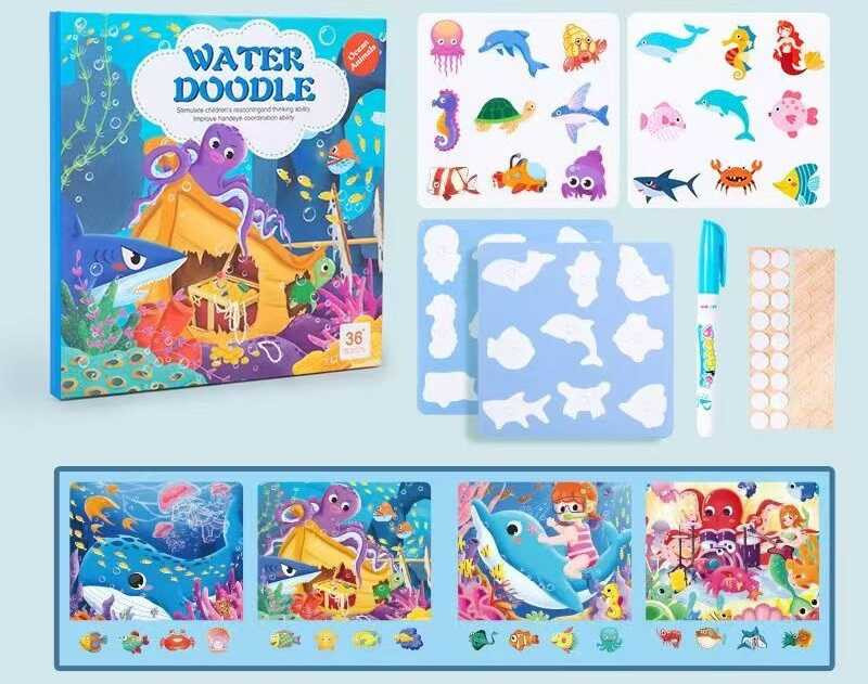 Логічна книжка C 75163 (80) океан, картки на липучках, водна розмальовка, водний маркер, сортер, в