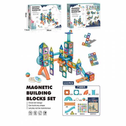 Магнітний конструктор 6670 A (12) 132 деталі, 8 кульок, трубки, віконця, в коробці