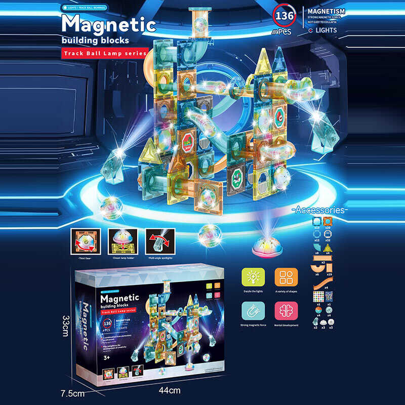 Магнітний конструктор 6805 A (12/2) 136 деталей, підсвічування, м'ячики, в коробці
