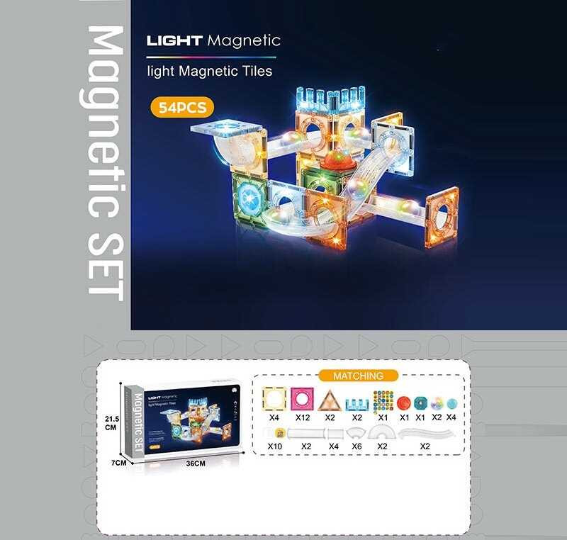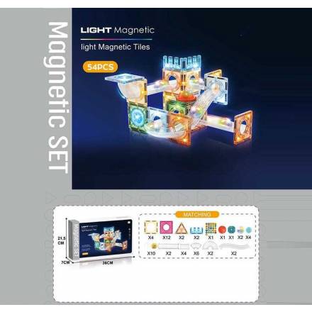 Магнітний конструктор CH 1177 (24) 54 деталі, елементи з підсвічуванням, наліпки з англійськими назв