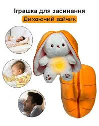 М’яка іграшка «зайчик» дихаючий, нічник музичний для сну з підсвічуванням, 1416