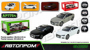 Машина мет. АВТОПРОМ арт. AP7754 (12шт/2) 1:24 AUDI A6L, батар,світло,звук,відкр.двері,короб.