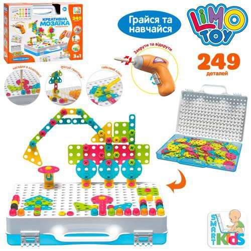 Мозаїка M 5590 (16шт) 3в1, на шурупах,шуруповерт,249дет,на бат-ці,в чемодані,в карт.обертці,31-24,5-
