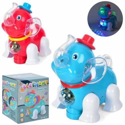 Музична іграшка 168A-12 (24шт) 20см, слоник, музика, світло, їздить, 2 кольори, в кор-ці, 20-17,5-13