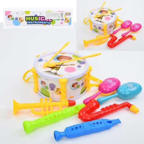 Музичні інструменти 333-3-5 барабан 18см, 2 палички, дудки, маракаси