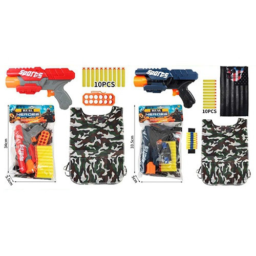Набір амуніції 88P-11-12 (24шт)пістолет 21 см, жилет, м'які кульки 10шт, 2 види, в кульку, 33,5-20,5