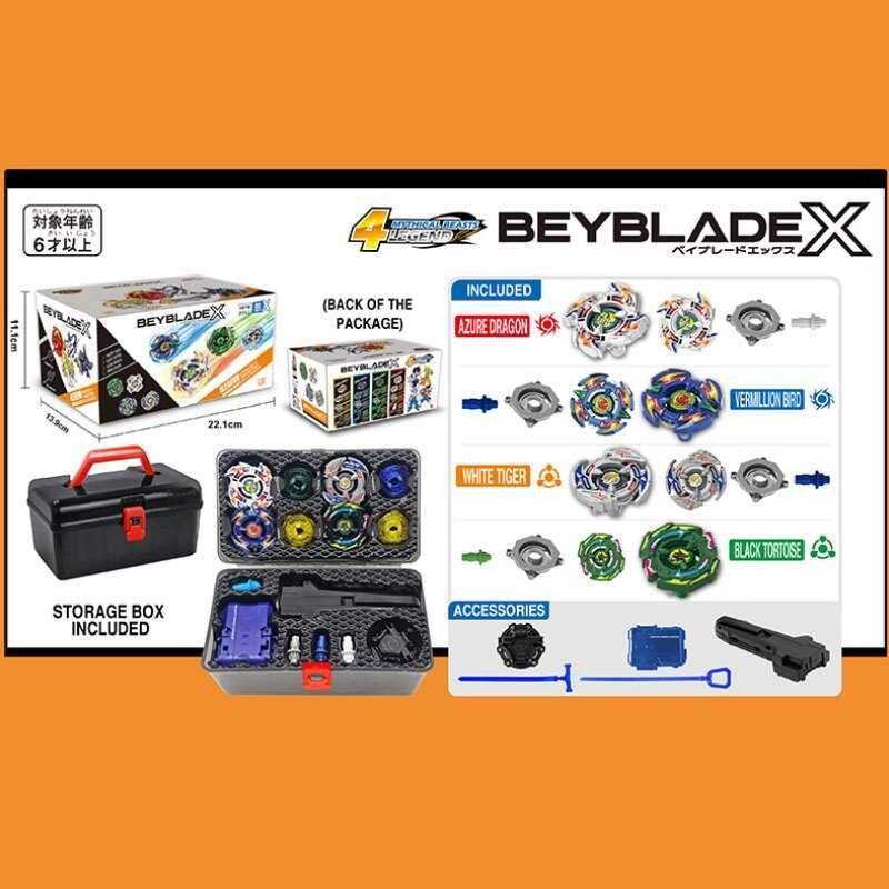 Набір бейблейдів F 716 (60) 4 дзиґи, 2 запускачі, металеві елементи дзиґ, бокс, в коробці