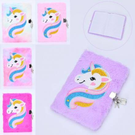 Набір для творчості MR-174 (100шт) 21см, блокнот(лінія), замок, плюш, єдиноріг, мікс кольорів, в пак