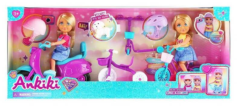Набір ляльок 606119 (24) 2 ляльки, висота: 13 см, фігурка улюбленця, 2 велосипеди, самокат, скутер,