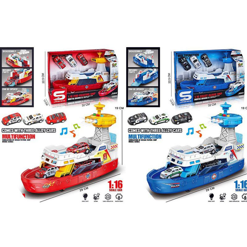 Набір з транспортом JS160-60A (12шт) 1:16, катер 29см (інерція), звук, світло, машинка 7,5см 3шт(мет