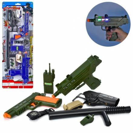 Набір зі зброєю CH625AB (24шт) автомат24см,пістолет20см,дубинка,зв,св,2в,бат-таб,на листі,24-67-5см
