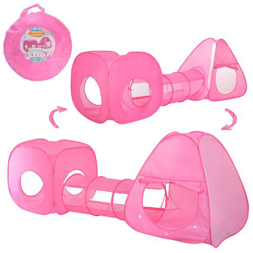 Намет M 2958-1 (6шт) з тунелем,піраміда,куб,230-76-89см,рожевий, сумка, 42-42-5см
