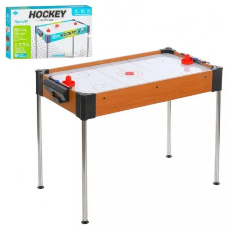 Настільна гра 2558 (4шт) аерохокей, дерев'яний, на ніжках(метал), 86-43,5-в67см, 2 ручки, шайба