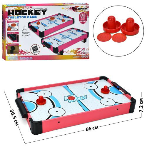 Настільна гра 2573 (9шт) аерохокей, дерев'яний, 66-36,5-7,2см, поле 58,5-33,5см, 2 ручки, 2 шайби, н
